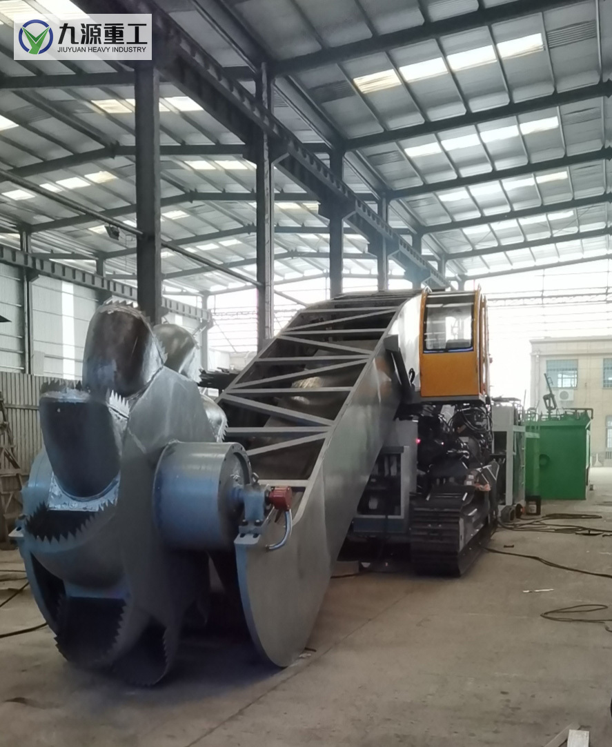 斗輪取料機(jī),是指一種用于大型干散貨堆場的既能堆料又能取料的連續(xù)輸送的高效裝卸機(jī)械。由可俯仰和水平擺動的膠帶輸送臂及其前端的斗輪、機(jī)架、運行機(jī)構(gòu)組成,膠帶可雙向運行,取料時由斗輪取料經(jīng)輸送臂送出,堆料時則由主輸送機(jī)運來的貨物經(jīng)由輸送臂投向堆場。